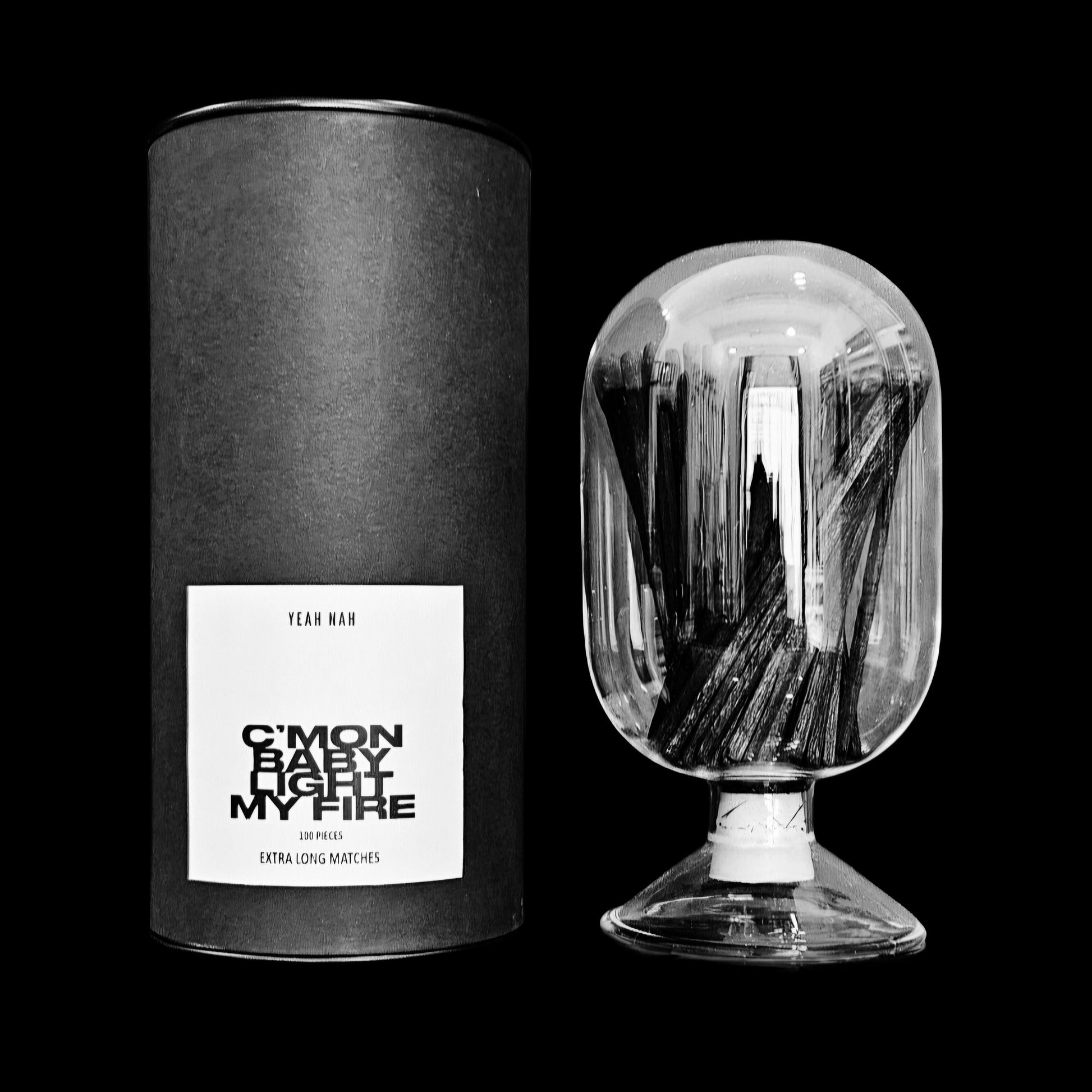 Jim Morrison famously sang, 'Come on baby, light my fire'. Use these chic extra long matches to light your Yeah Nah Candles, or indeed, your fire (just wait until summer ends, fire warnings and all that). 100 long black matches are encased in a hand blown glass cloche, stylish enough to keep on your coffee table.
